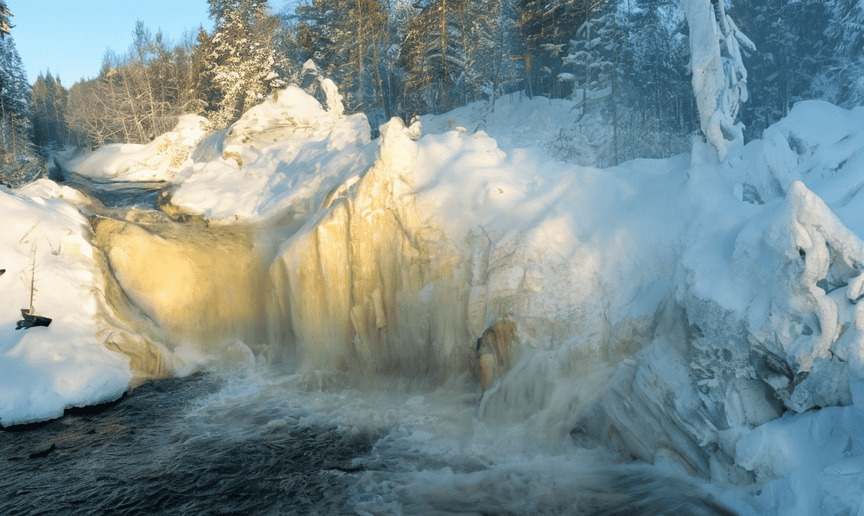 Кивач — второй по величине равнинный водопад Европы, уступающий лишь Рейнскому водопаду в Швейцарии. Его высота составляет около 11 метров, а мощные потоки воды реки Суны с грохотом обрушиваются вниз, создавая завораживающее зрелище. В любое время года водопад выглядит впечатляюще, но особенно красив он зимой. Ледяные глыбы и снежные шапки придают пейзажу сказочный вид, а шум воды контрастирует с тишиной заснеженного леса.